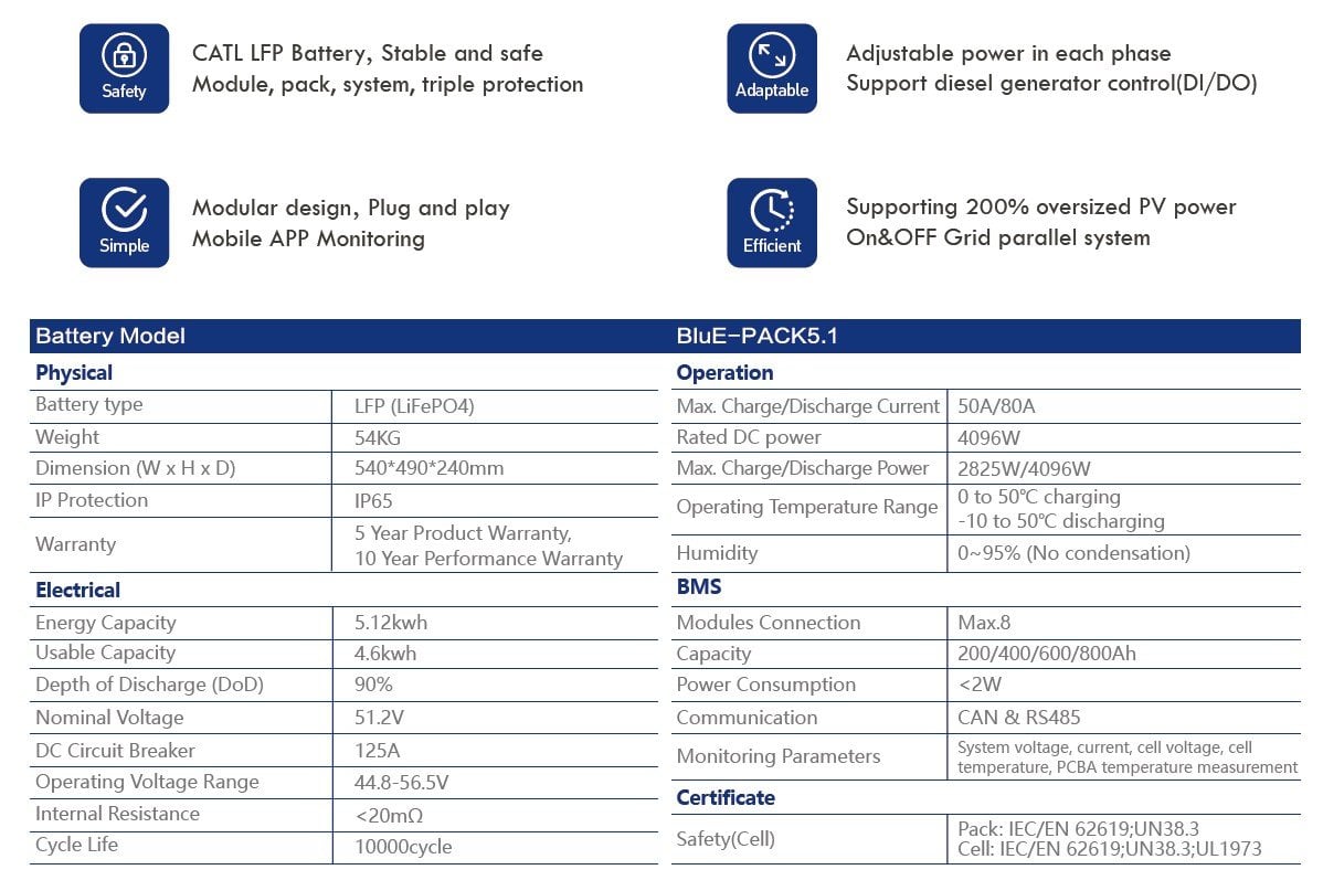 (10kW hibrit inverter + 2 adet 5,1kWh CATL batarya + bağlantı kablosu ve akım trafoları)