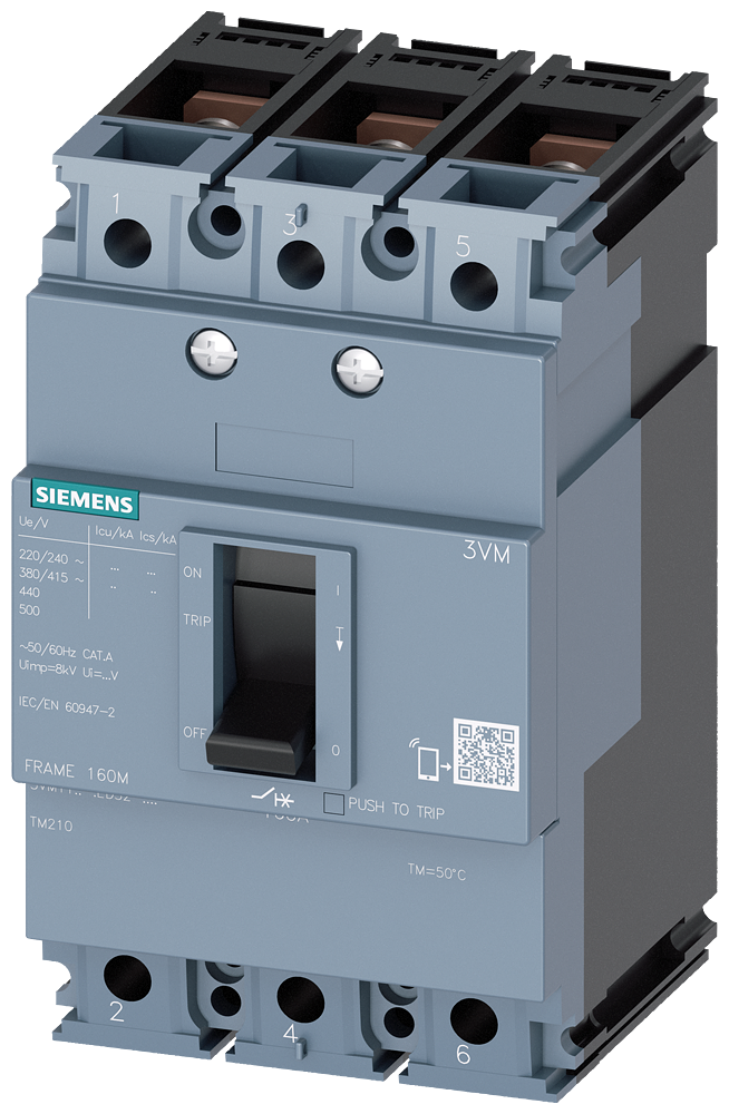 Siemens 3VM1116-4ED32-0AA0 SENTRON SERİSİ KOMPAKT TİP GÜÇ ŞALTERİ;3VM11, 36kA, 160A, TM210, FTFM, SABİT TERMİK SABİT MANYETİK, 3 KUTUPLU